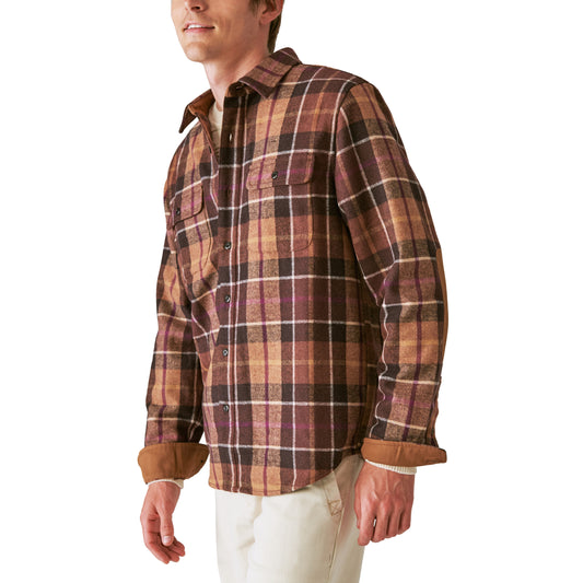 Guinness Wool Plaid Over Shirt With Elbow Patch - Brown Plaid