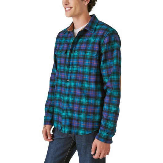Guinness Wool Plaid Over Shirt With Elbow Patch - Green Plaid